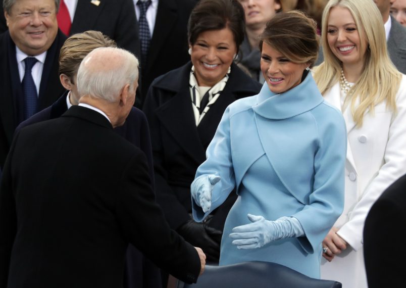 Tra poche ore si terra la cerimonia del giuramento di Donald Trump, che diventerà ufficialmente il 45esimo Presidente degli Stati Uniti. La nuova First Lady, Melania, è apparsa elegante e raffinata in un abito di cashmere celeste firmato Ralph Lauren e ha completato il tutto con un'acconciatura raccolta e degli accessori della stessa tonalità pastello.