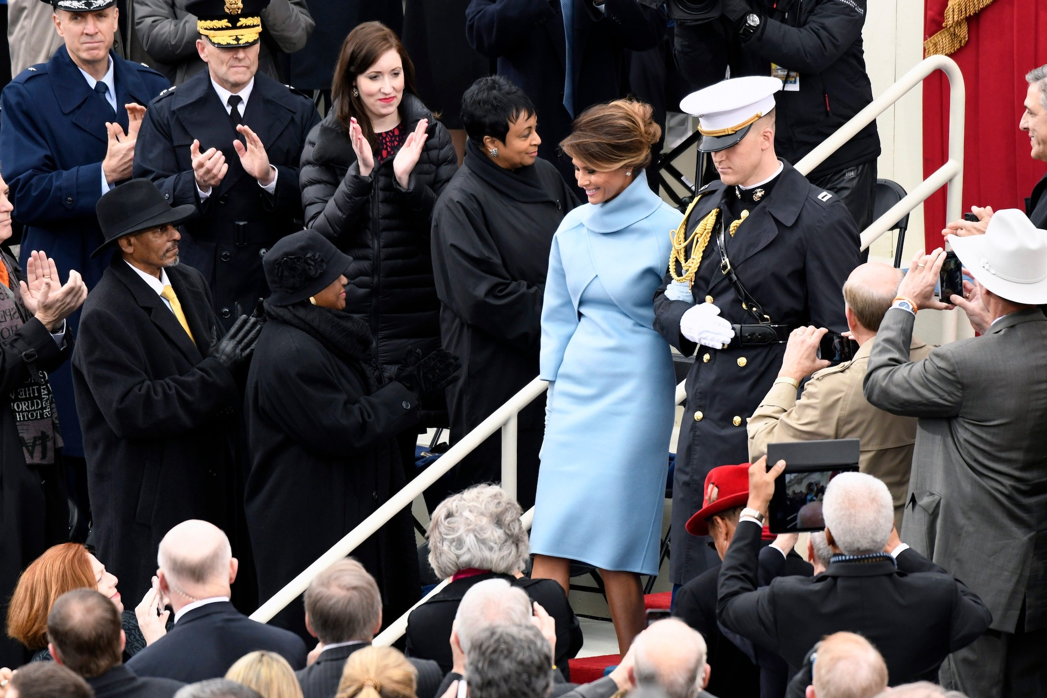 Tra poche ore si terra la cerimonia del giuramento di Donald Trump, che diventerà ufficialmente il 45esimo Presidente degli Stati Uniti. La nuova First Lady, Melania, è apparsa elegante e raffinata in un abito di cashmere celeste firmato Ralph Lauren e ha completato il tutto con un'acconciatura raccolta e degli accessori della stessa tonalità pastello.