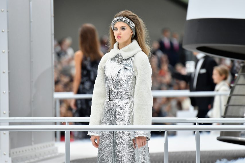 In occasione della Paris Fashion Week, Chanel ha presentato la collezione donna Autunno/Inverno 2017-18, trasformando la passerella in una vera e propria astronave. Tailleur di bouclé decorato con delle catene, borsa a forma di missile o di pianeta, fascia di cristalli, stivali argentati, sono solo alcune delle caratteristiche della linea dallo stile futuristico.