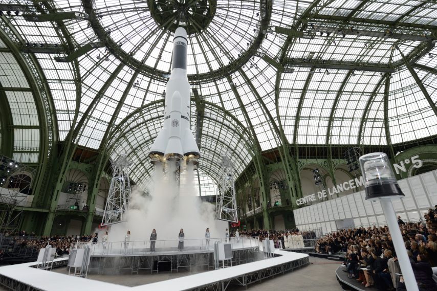 In occasione della Paris Fashion Week, Chanel ha presentato la collezione donna Autunno/Inverno 2017-18, trasformando la passerella in una vera e propria astronave. Tailleur di bouclé decorato con delle catene, borsa a forma di missile o di pianeta, fascia di cristalli, stivali argentati, sono solo alcune delle caratteristiche della linea dallo stile futuristico.