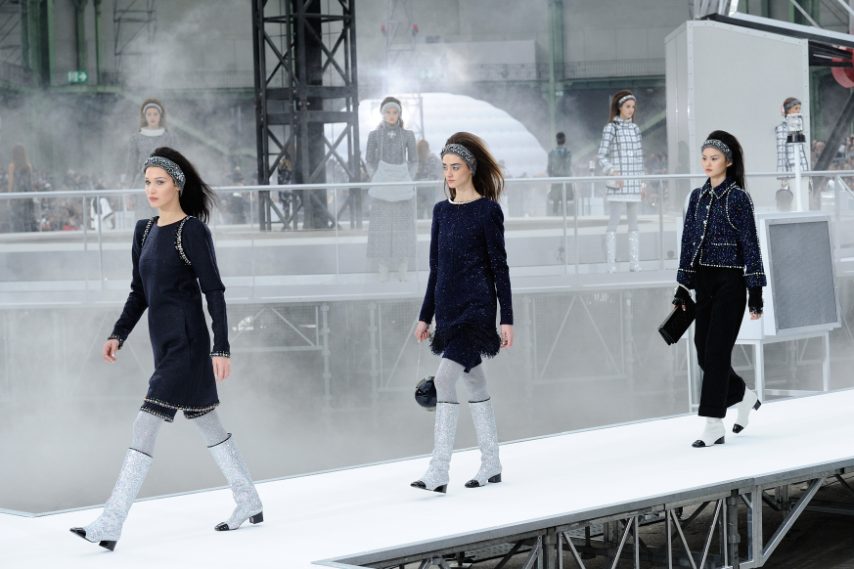 In occasione della Paris Fashion Week, Chanel ha presentato la collezione donna Autunno/Inverno 2017-18, trasformando la passerella in una vera e propria astronave. Tailleur di bouclé decorato con delle catene, borsa a forma di missile o di pianeta, fascia di cristalli, stivali argentati, sono solo alcune delle caratteristiche della linea dallo stile futuristico.