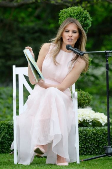 In occasione dell'annuale festa Easter Egg Roll, Melania Trump ha sfoggiato un look inedito. La First Lady ha scelto di dire addio ai tacchi e agli abiti aderenti per dare spazio a un outfit da fata. Ha sfoggiato un abito rosa pastello firmato Hervé Pierre con delle ballerine a punta dello stesso colore di Christian Louboutin.