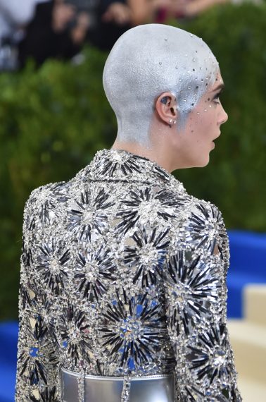 Cara Delevingne con lo scalpo argentato al Met Gala 2017