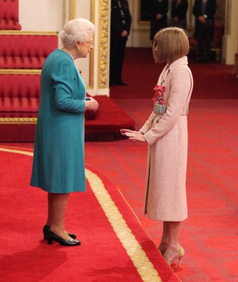 Anna Wintour è stata premiata per il suo talento e per i suoi successi nel campo della moda e del giornalismo. La direttrice dell'edizione americana della rivista "Vogue" ha partecipato a una cerimonia di investitura a Buckingham Palace, dove ha incontrato la regina Elisabetta II, ed è diventata ufficialmente una Dama inglese.