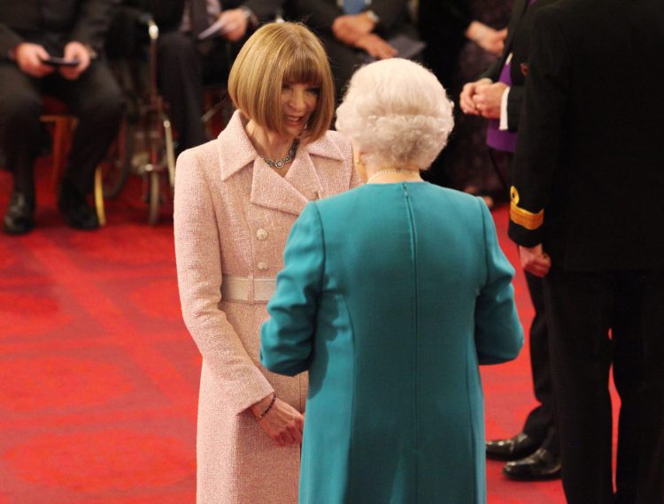 Anna Wintour è stata premiata per il suo talento e per i suoi successi nel campo della moda e del giornalismo. La direttrice dell'edizione americana della rivista "Vogue" ha partecipato a una cerimonia di investitura a Buckingham Palace, dove ha incontrato la regina Elisabetta II, ed è diventata ufficialmente una Dama inglese.