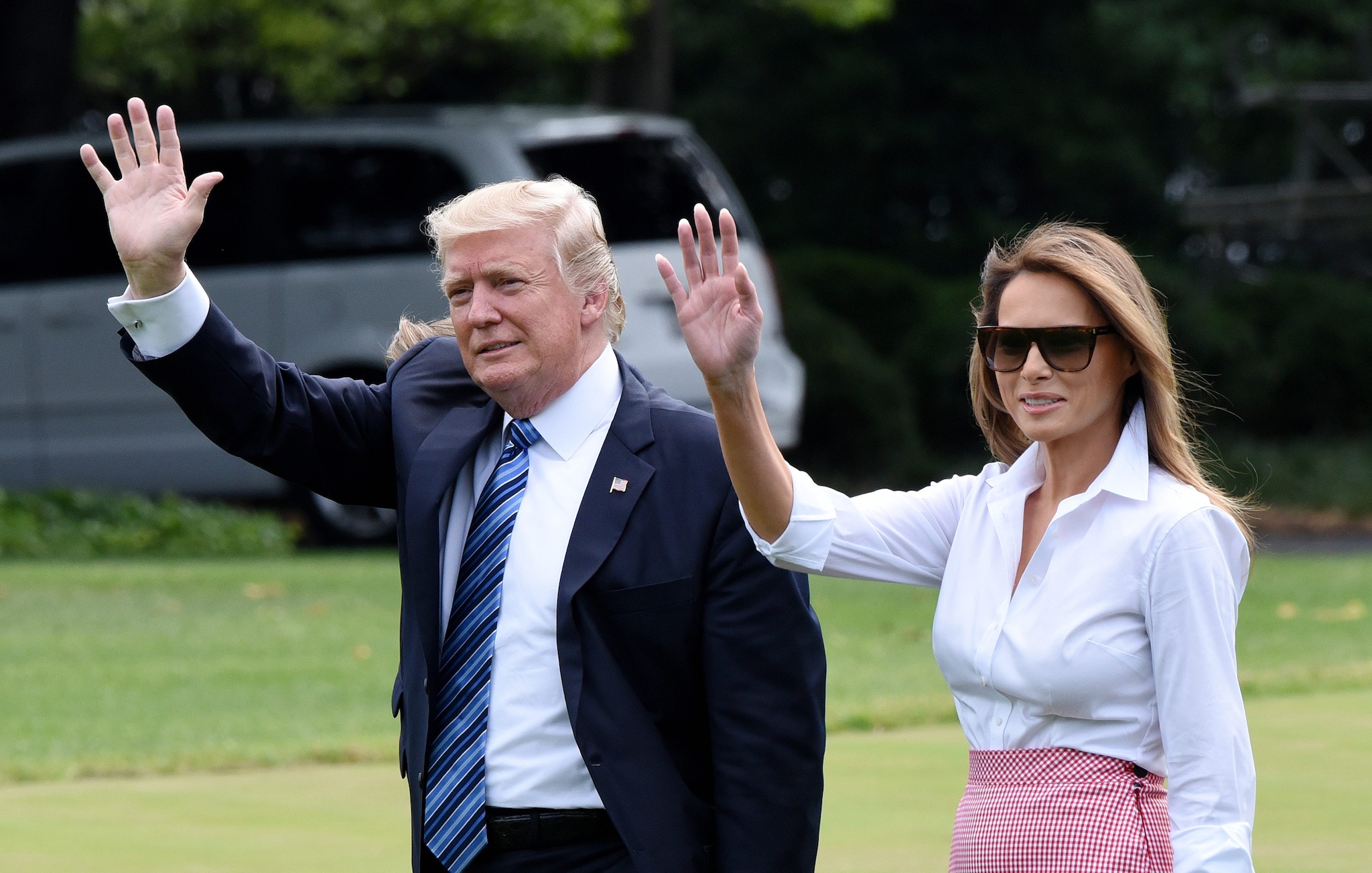 I Trump si sono concessi qualche giorno di vacanza, hanno passato il weekend nella loro tenuta a Bedminster, nel New Jersey, e Melania ha pensato bene di puntare tutto su un look da picnic per il suo arrivo all'aeroporto di Morristown. La First Lady è apparsa elegante con una gonna al ginocchio a quadretti stampa vichy firmata Altuzarra, una camicia bianca e dei décolleté Louboutin dal tacco altissimo.