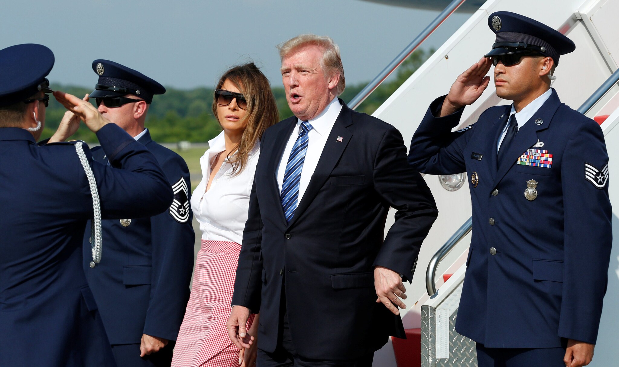 I Trump si sono concessi qualche giorno di vacanza, hanno passato il weekend nella loro tenuta a Bedminster, nel New Jersey, e Melania ha pensato bene di puntare tutto su un look da picnic per il suo arrivo all'aeroporto di Morristown. La First Lady è apparsa elegante con una gonna al ginocchio a quadretti stampa vichy firmata Altuzarra, una camicia bianca e dei décolleté Louboutin dal tacco altissimo.
