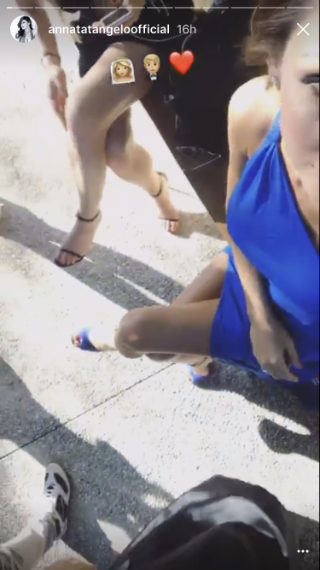 Ieri sera Anna Tatangelo ha preso parte al matrimonio del cugino e per l'occasione ha sfoggiato un look griffatissimo. La cantante ha indossato infatti un lungo abito blu cobalto di Versace dallo spacco vertiginoso, arricchendolo con un paio di sandali dal tacco a spillo firmato Casadei.
