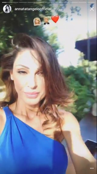 Anna Tatangelo in blu per il matrimonio del cugino