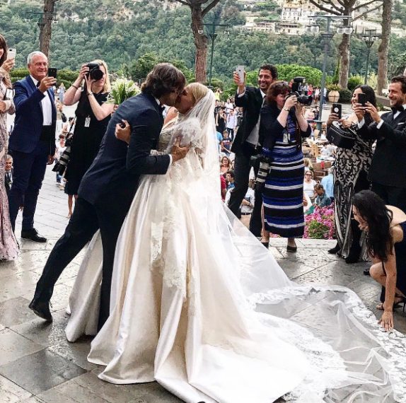 Un sontuoso abito bianco, firmato Zuhair Murad, con cristalli e paillettes cucite, profonda scollatura e ampia gonna, ecco il vestito da sposa da favola della modella, angelo di Victoria's Secret, Vita Sidorkina per il matrimonio con l'italiano Valerio Morabito