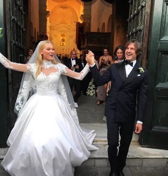 Un sontuoso abito bianco, firmato Zuhair Murad, con cristalli e paillettes cucite, profonda scollatura e ampia gonna, ecco il vestito da sposa da favola della modella, angelo di Victoria's Secret, Vita Sidorkina per il matrimonio con l'italiano Valerio Morabito