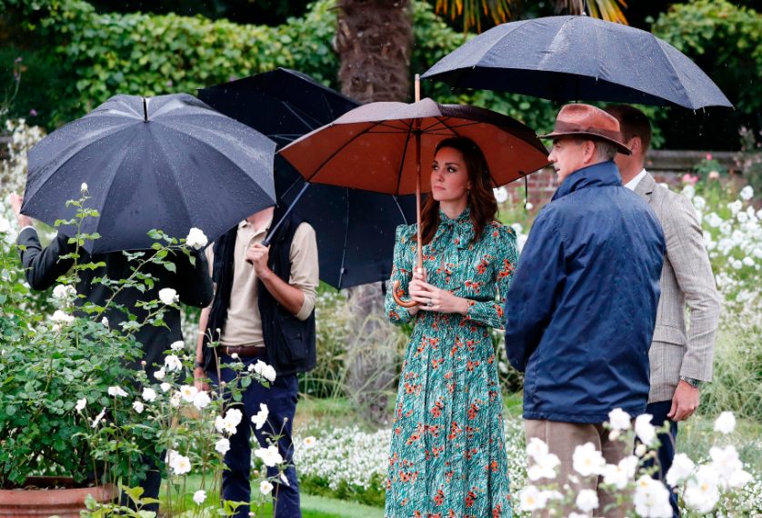 Si è tenuto oggi a Kensington Palace l'evento commemorativo per i 20 anni dalla morte della principessa Diana e Kate Middleton non poteva che essere al fianco del marito. Per l'occasione ha indossato un delizioso abito a fiori Prada, che è riuscito a esaltare la sua silhouette perfetta in modo elegante.