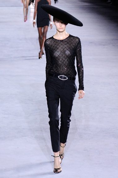 Saint Laurent ha presentato la collezione Primavera/Estate 2018 durante la prima giornata della Paris Fashion Week. Il direttore creativo Anthony Vaccarello ha mandato in passerella delle modelle con gambe in mostra, sandali con il tacco a spillo decorati con piume, shorts di pelle nera, camicie in stile vittoriano, tutù di seta. Tutto è in bianco e nero, dando prova del fatto che anche la semplicità può essere elegante e glamour.