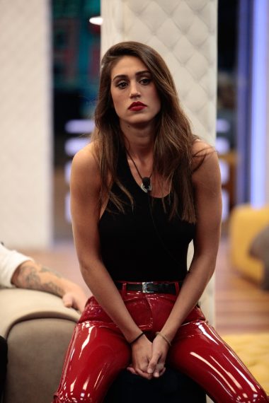 Cecilia Rodriguez con i pantaloni rossi in vernice al GF Vip