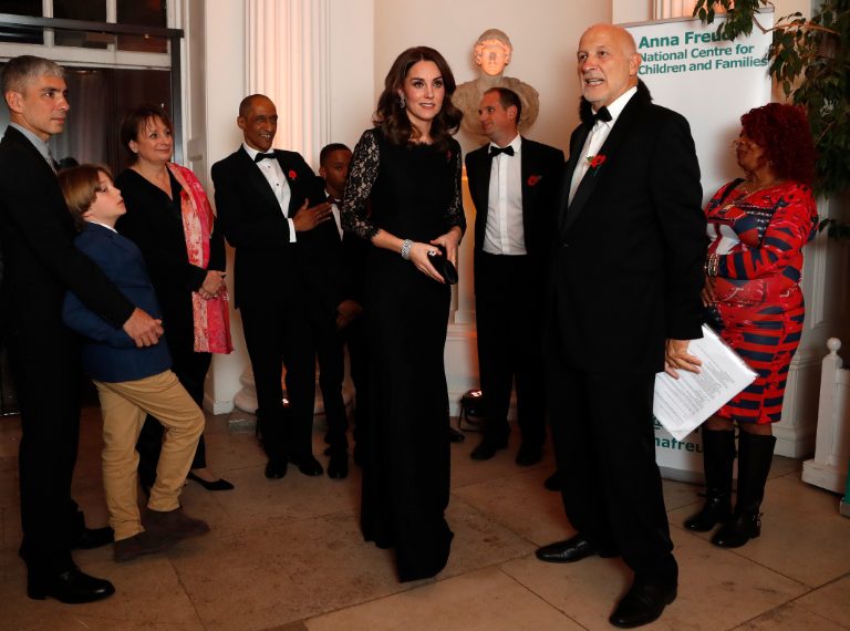 In occasione del gala benefico dell’Anna Freud National or Children and Families, Kate Middleton ha puntato tutto sul total black. La principessa è apparsa elegantissima con indosso un lungo abito in pizzo firmato Diane von Furstenberg, caratterizzato da delle trasparenze sexy sulle maniche e da una silhouette a sirena che ha esaltato le forme modificate dalla gravidanza sempre più evidenti.