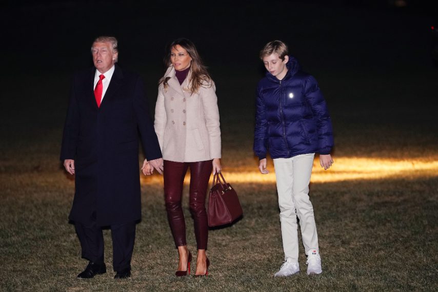 Melania Trump è rientrata alla Casa Bianca dopo aver passato la notte di Capodanno con la famiglia a Palm Beach. Per la festa del 31 dicembre ha sfoggiato un abito di paillettes rosa firmato Erdem, mentre per il viaggio a Washington un inedito look rock, caratterizzato da un leggings di pelle bordeaux, un cappottino beige, una borsa Birkin e dei décolleté dal tacco vertiginoso abbinati firmati Louboutin.