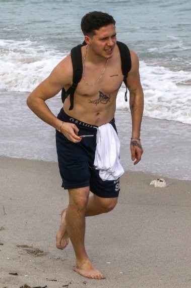 Brooklyn Beckham è stato avvistato sulle spiagge di Miami qualche giorno fa con indosso solo un costume da bagno, rivelando sia i numerosi tatuaggi che ha sul corpo che l'elastico dello slip. Il figlio maggiore di David e Victoria ha solo 18 anni ma ha già tutte le carte in regola per diventare un sex symbol.