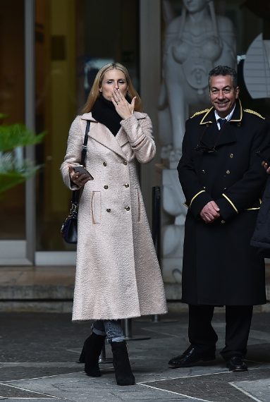 • Michelle Hunziker esce dall'hotel a Sanremo