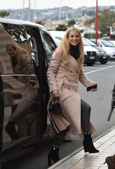 • Michelle Hunziker esce dall'hotel a Sanremo