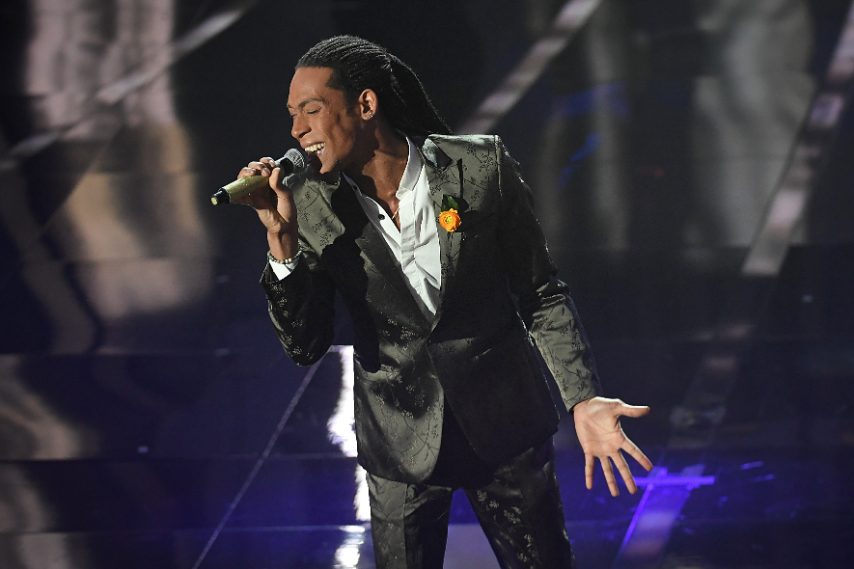 • Elio con il fiore durante la seconda serata