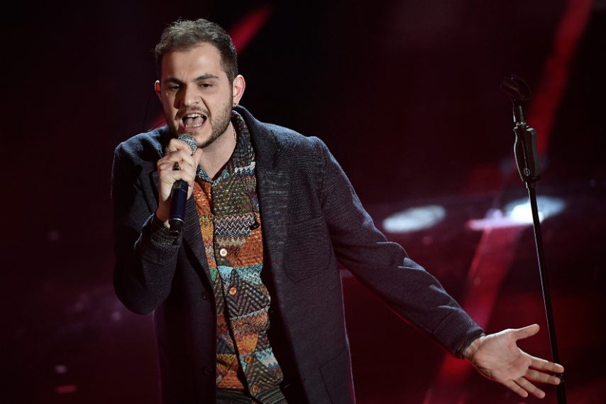 • Il cantante sul palco di Sanremo