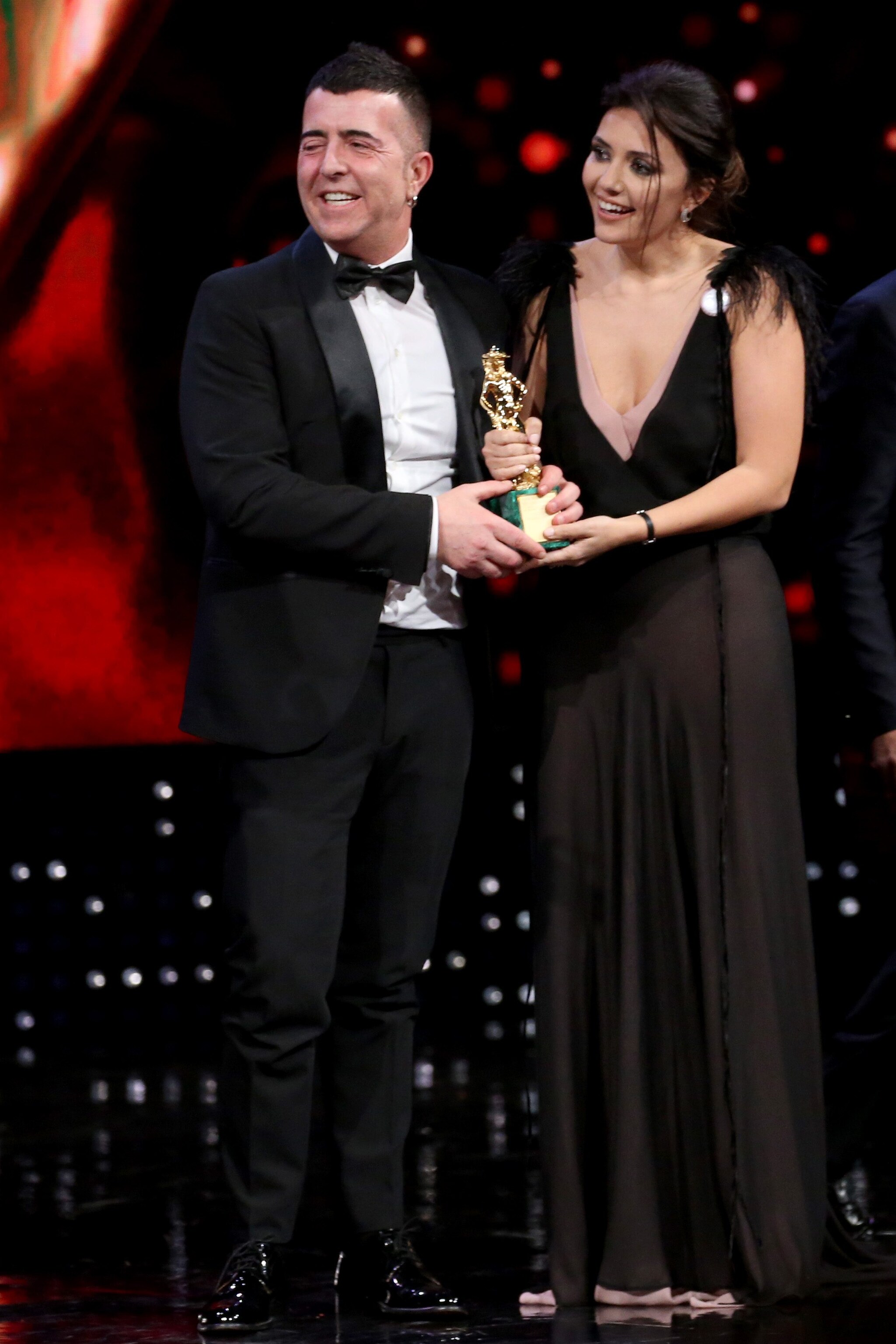 Serena Rossi ha preso parte all'ultima edizione dei David di Donatello, dove ha ricevuto il premio per la migliore canzone originale con la sua interpretazione di "Bang Bang" nel film "Ammore e malavita". Per calcare il red carpet, l'attrice ha sfoggiato un lungo abito nero e rosa firmato La Jolie Fille Robe con una profonda scollatura sul seno e sulla schiena e delle piume sulle spalle. Per completare il tutto ha scelto dei sandali con il tacco Le Silla e una pochette Fendi.