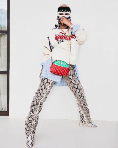 • Rihanna con la fascia Gucci e i capezzoli in mostra