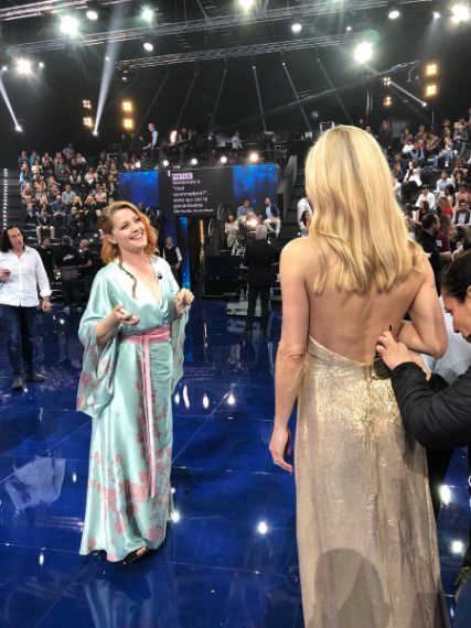 Ieri sera è andata in onda la seconda puntata del nuovo programma di Canale 5, "Vuoi scommettere?", la cui protagonista indiscussa è la presentatrice Michelle Hunziker. Per l'occasione ha indossato un lungo abito in oro firmato Genny che le fasciava la silhouette e con lo scollo all'americana che le lasciava le spalle scoperte. Ha poi completato il tutto tenendo i capelli sciolti e fluenti.