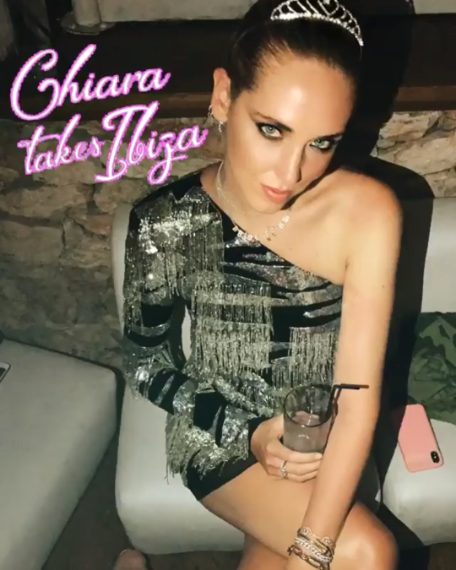 Chiara Ferragni si sposerà il prossimo primo settembre e, prima di pronunciare il fatidico sì, non poteva che organizzare un addio al nubilato da urlo. E' volata a Ibiza con sorelle e amici, facendo realizzare per tutti delle giacche di paillettes personalizzate appositamente per lei da Alberta Ferretti con la scritta #ChiaraTakesIbiza: la sua è rosa, quella degli altri è azzurra.
