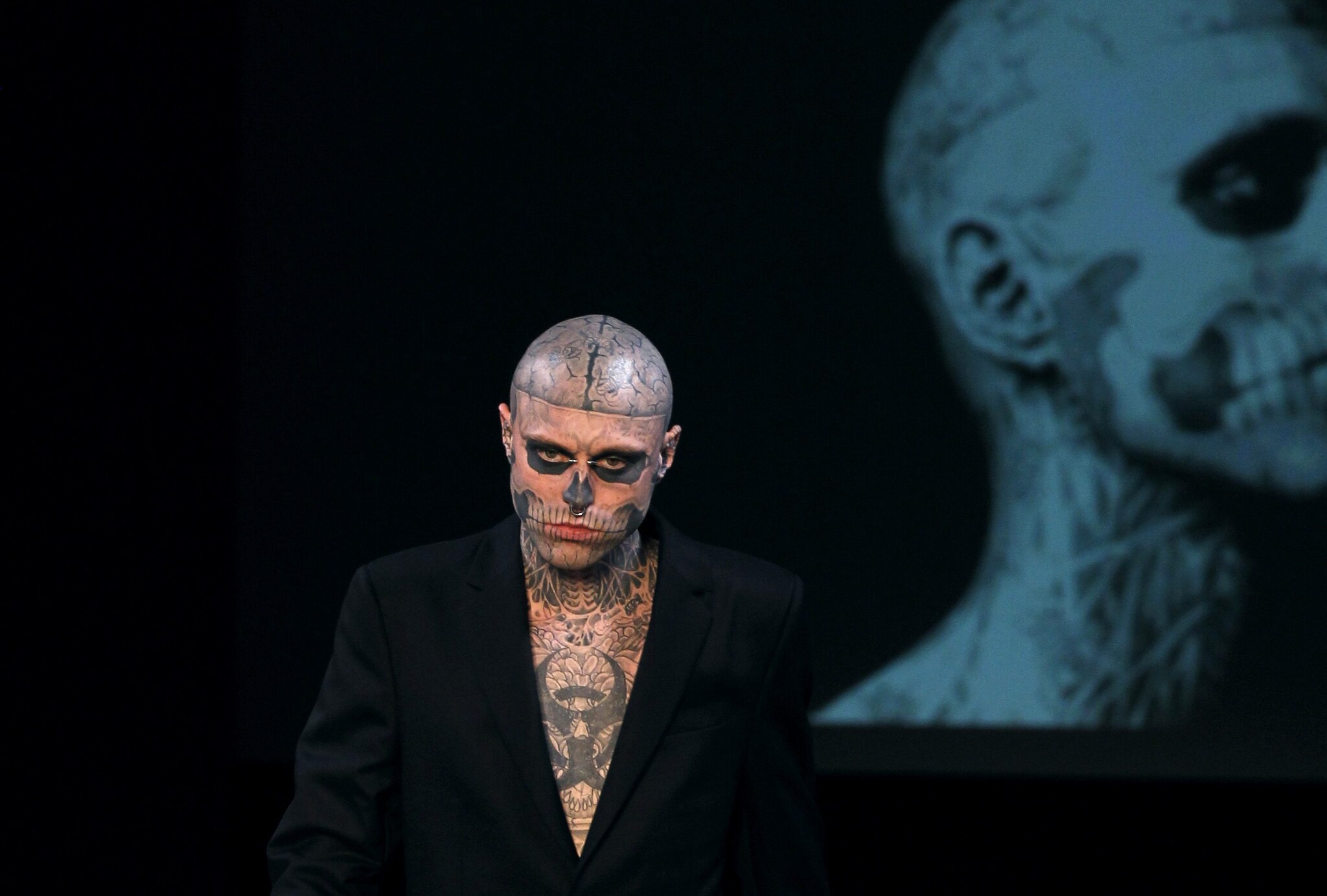 Il mondo della moda piange la morte prematura di Rick Genest, modello canadese di 32 anni meglio conosciuto come Zombie Boy per il corpo quasi completamente tatuato. Grande amico di Nicola Formichetti ha sfilato per Mugler ed è apparso nel video "Born this way" di Lady Gaga. Ecco l'addio degli amici, le foto in passerella e com'era senza tatuaggi