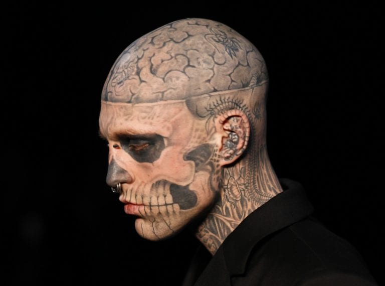 Il mondo della moda piange la morte prematura di Rick Genest, modello canadese di 32 anni meglio conosciuto come Zombie Boy per il corpo quasi completamente tatuato. Grande amico di Nicola Formichetti ha sfilato per Mugler ed è apparso nel video "Born this way" di Lady Gaga. Ecco l'addio degli amici, le foto in passerella e com'era senza tatuaggi