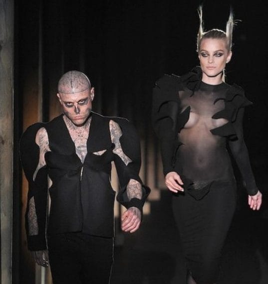 Il mondo della moda piange la morte prematura di Rick Genest, modello canadese di 32 anni meglio conosciuto come Zombie Boy per il corpo quasi completamente tatuato. Grande amico di Nicola Formichetti ha sfilato per Mugler ed è apparso nel video "Born this way" di Lady Gaga. Ecco l'addio degli amici, le foto in passerella e com'era senza tatuaggi