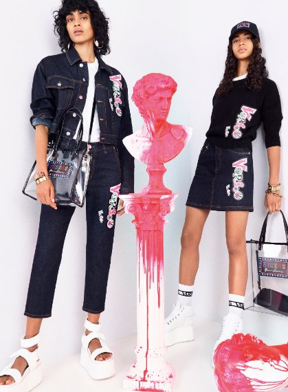 A 30 anni dal lancio della linea Versus Versace, creata da Gianni per la sorella Donatella, quest'ultima ha deciso di rinnovarla, fondendo vintage e contemporaneo. Il tratto distintivo della collezione? La stampa decorata a mano che riproduce la scritta "Gianni gave Donatella Versus 1989".