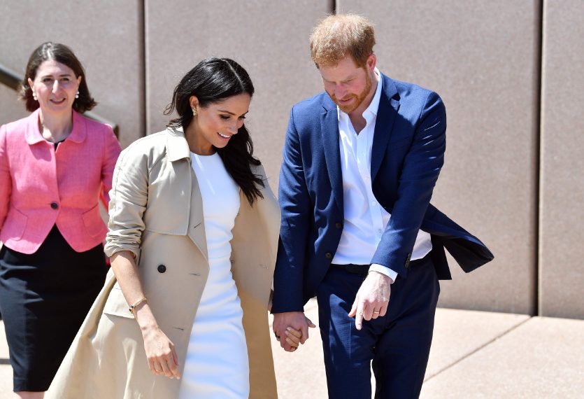 Meghan Markle è apparsa per la prima volta in pubblico dopo l'annuncio della gravidanza. E' volata in Australia con il marito e per l'occasione ha sfoggiato un look total white, caratterizzato da un tubino di Karen Gee che ha rivelato il pancino, un trench beige tenuto sbottonato e dei décolleté nude di Stuart Weitzman.
