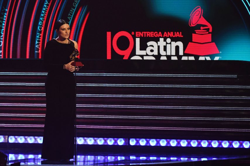 Laura Pausini in total black ai Latin Grammy Awards 2018
