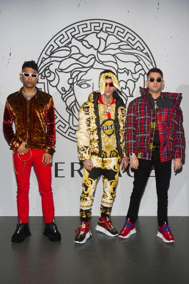 • Sfera Ebbasta alla sfilata di Versace