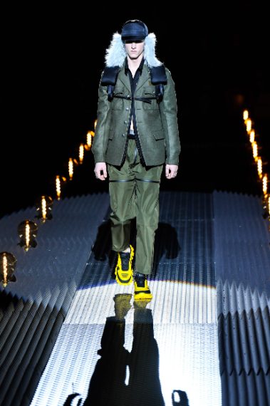 Prada ha presentato la collezione Autunno/Inverno 2019-20 durante la Milano Fashion Week dedicata alla moda Uomo. La Maison ha fatto sfilare i modelle in una location "ovattata", illuminata solo da un suggestivo tappeto di lampade, che aveva l'obiettivo di mettere in risalto l'umanità della linea. Pantaloni larghi e lunghi fino al ginocchio, giacche scostate da corpo, capispalla militari, sono solo alcuni dei capi con cui la stilista della griffe è voluta tornare alle origini.