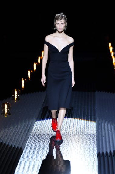 Prada ha presentato la collezione Autunno/Inverno 2019-20 durante la Milano Fashion Week dedicata alla moda Uomo. La Maison ha fatto sfilare i modelle in una location "ovattata", illuminata solo da un suggestivo tappeto di lampade, che aveva l'obiettivo di mettere in risalto l'umanità della linea. Pantaloni larghi e lunghi fino al ginocchio, giacche scostate da corpo, capispalla militari, sono solo alcuni dei capi con cui la stilista della griffe è voluta tornare alle origini.