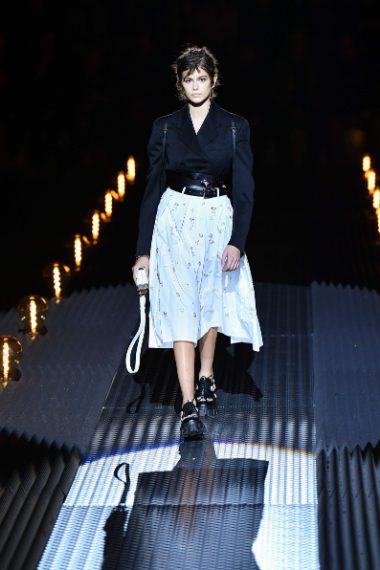 Prada ha presentato la collezione Autunno/Inverno 2019-20 durante la Milano Fashion Week dedicata alla moda Uomo. La Maison ha fatto sfilare i modelle in una location "ovattata", illuminata solo da un suggestivo tappeto di lampade, che aveva l'obiettivo di mettere in risalto l'umanità della linea. Pantaloni larghi e lunghi fino al ginocchio, giacche scostate da corpo, capispalla militari, sono solo alcuni dei capi con cui la stilista della griffe è voluta tornare alle origini.