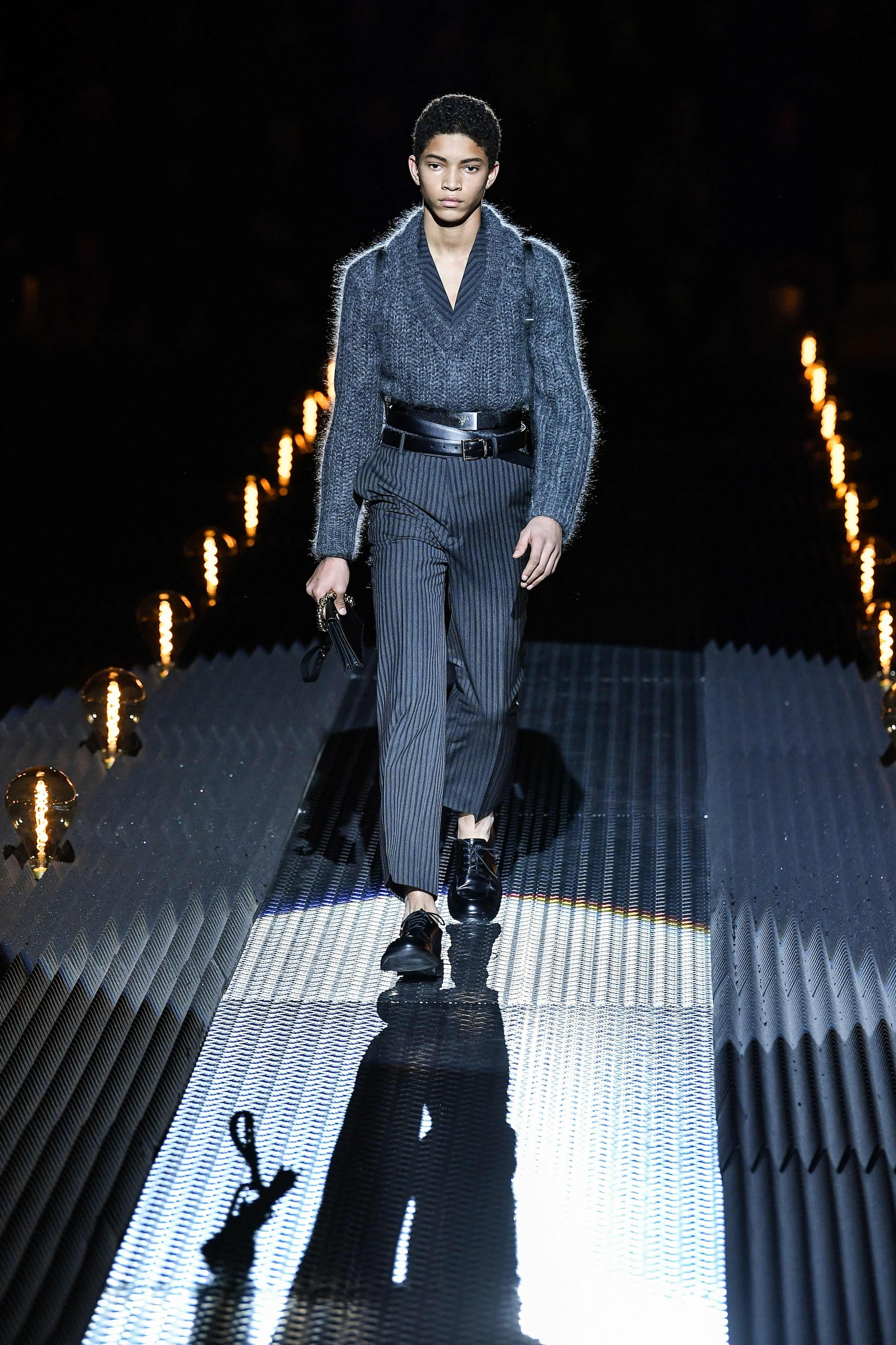Prada ha presentato la collezione Autunno/Inverno 2019-20 durante la Milano Fashion Week dedicata alla moda Uomo. La Maison ha fatto sfilare i modelle in una location "ovattata", illuminata solo da un suggestivo tappeto di lampade, che aveva l'obiettivo di mettere in risalto l'umanità della linea. Pantaloni larghi e lunghi fino al ginocchio, giacche scostate da corpo, capispalla militari, sono solo alcuni dei capi con cui la stilista della griffe è voluta tornare alle origini.