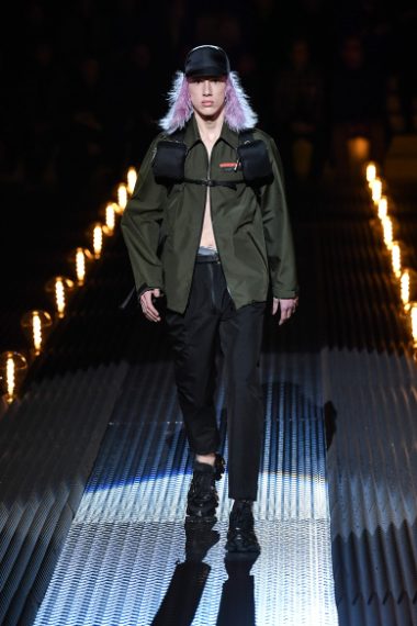 Prada ha presentato la collezione Autunno/Inverno 2019-20 durante la Milano Fashion Week dedicata alla moda Uomo. La Maison ha fatto sfilare i modelle in una location "ovattata", illuminata solo da un suggestivo tappeto di lampade, che aveva l'obiettivo di mettere in risalto l'umanità della linea. Pantaloni larghi e lunghi fino al ginocchio, giacche scostate da corpo, capispalla militari, sono solo alcuni dei capi con cui la stilista della griffe è voluta tornare alle origini.