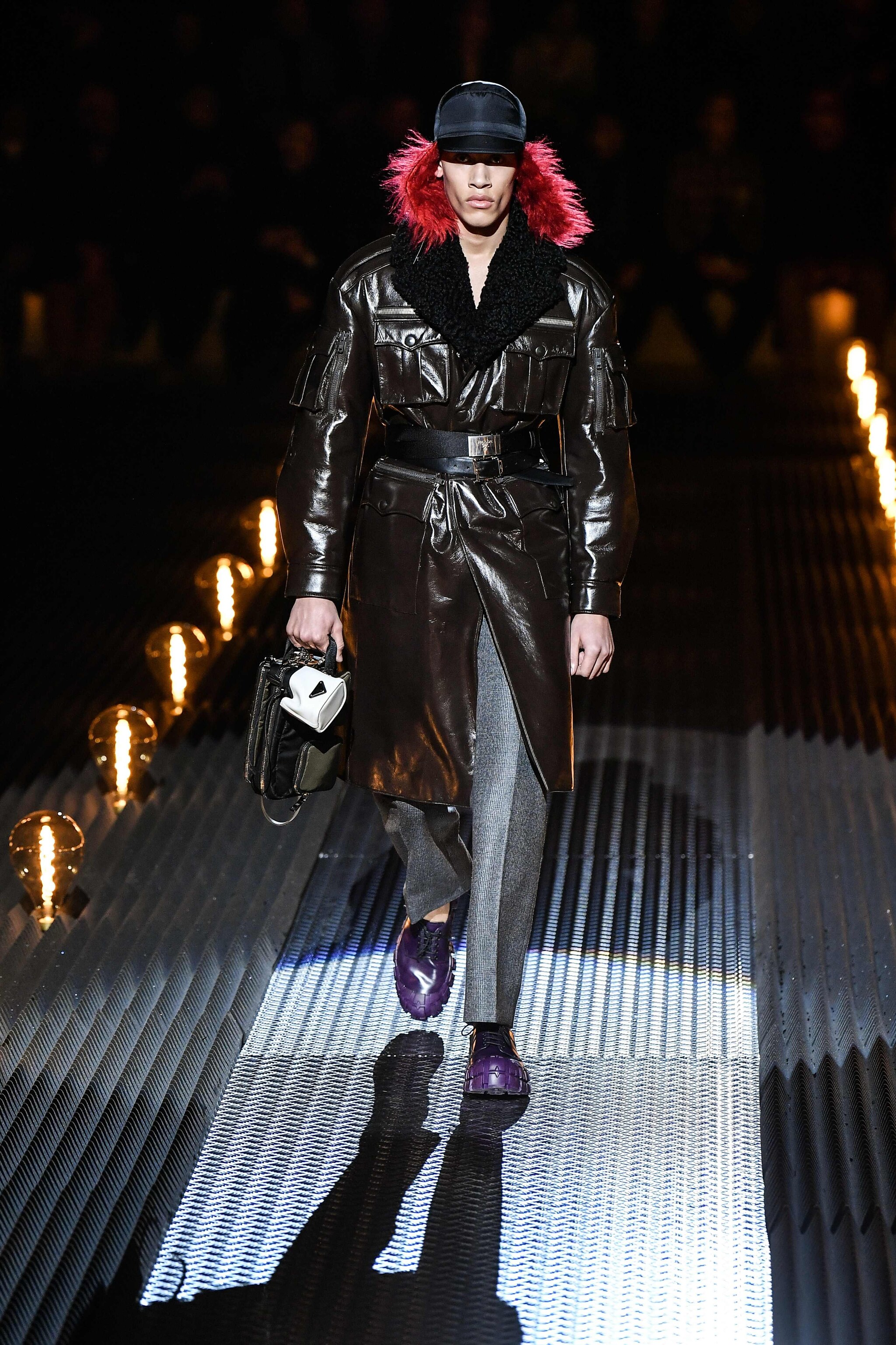 Prada ha presentato la collezione Autunno/Inverno 2019-20 durante la Milano Fashion Week dedicata alla moda Uomo. La Maison ha fatto sfilare i modelle in una location "ovattata", illuminata solo da un suggestivo tappeto di lampade, che aveva l'obiettivo di mettere in risalto l'umanità della linea. Pantaloni larghi e lunghi fino al ginocchio, giacche scostate da corpo, capispalla militari, sono solo alcuni dei capi con cui la stilista della griffe è voluta tornare alle origini.
