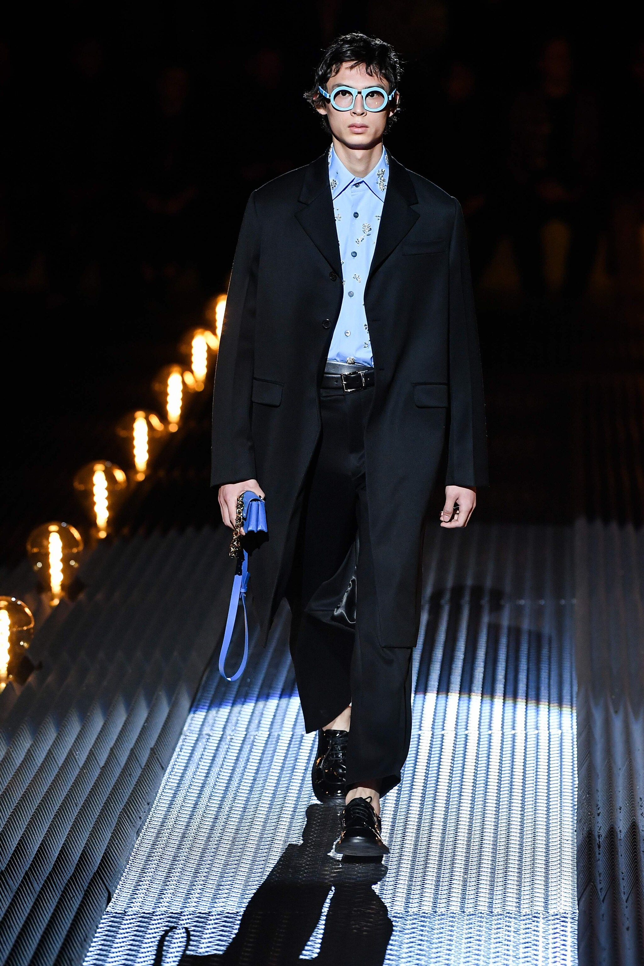 Prada ha presentato la collezione Autunno/Inverno 2019-20 durante la Milano Fashion Week dedicata alla moda Uomo. La Maison ha fatto sfilare i modelle in una location "ovattata", illuminata solo da un suggestivo tappeto di lampade, che aveva l'obiettivo di mettere in risalto l'umanità della linea. Pantaloni larghi e lunghi fino al ginocchio, giacche scostate da corpo, capispalla militari, sono solo alcuni dei capi con cui la stilista della griffe è voluta tornare alle origini.