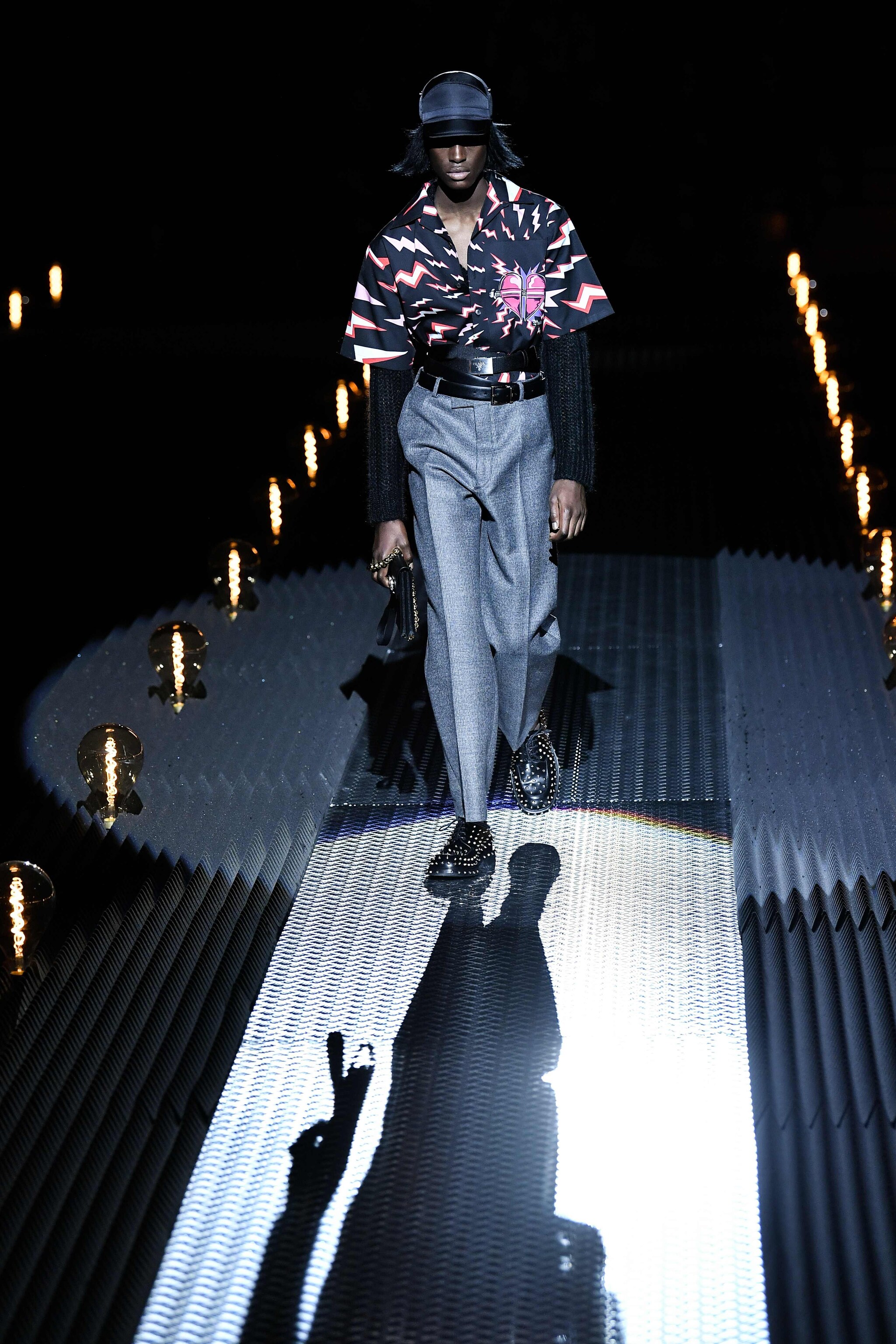 Prada ha presentato la collezione Autunno/Inverno 2019-20 durante la Milano Fashion Week dedicata alla moda Uomo. La Maison ha fatto sfilare i modelle in una location "ovattata", illuminata solo da un suggestivo tappeto di lampade, che aveva l'obiettivo di mettere in risalto l'umanità della linea. Pantaloni larghi e lunghi fino al ginocchio, giacche scostate da corpo, capispalla militari, sono solo alcuni dei capi con cui la stilista della griffe è voluta tornare alle origini.