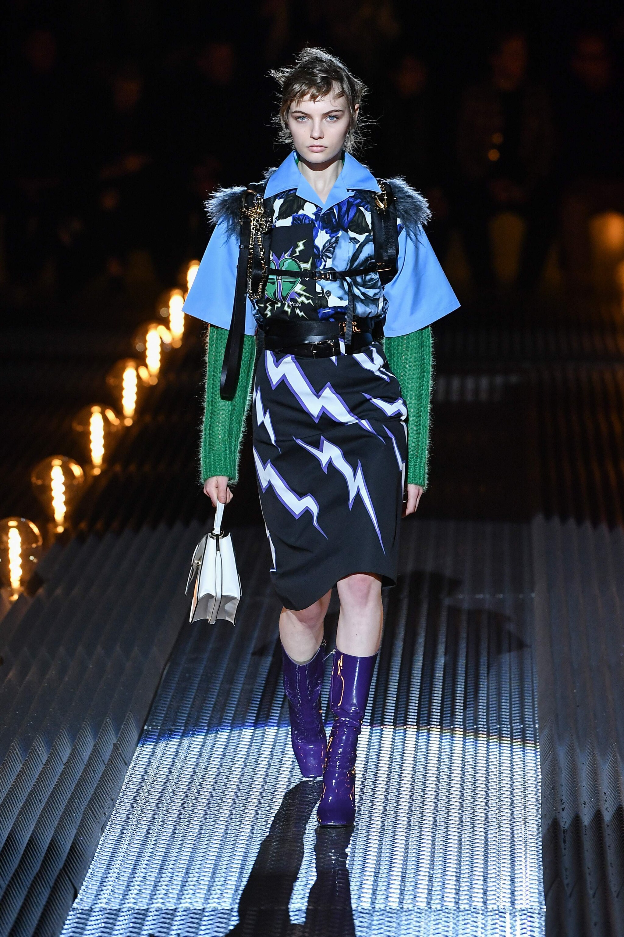 Prada ha presentato la collezione Autunno/Inverno 2019-20 durante la Milano Fashion Week dedicata alla moda Uomo. La Maison ha fatto sfilare i modelle in una location "ovattata", illuminata solo da un suggestivo tappeto di lampade, che aveva l'obiettivo di mettere in risalto l'umanità della linea. Pantaloni larghi e lunghi fino al ginocchio, giacche scostate da corpo, capispalla militari, sono solo alcuni dei capi con cui la stilista della griffe è voluta tornare alle origini.