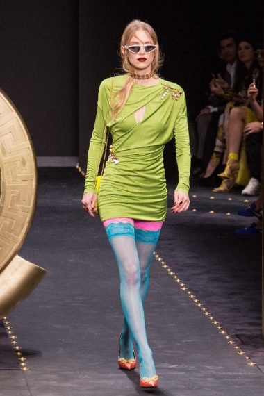 Versace è una delle Maison che hanno presentato la collezione Autunno/Inverno 2019-20 durante la Milano Fashion Week, mandando in passerella una donna forte, libera e aggressiva. Tra pellicce ecologiche, autoreggenti a vista, reggiseni portati sopra le maglie, Donatella Versace ha voluto fare molti riferimenti all'universo bondage, anche se il suo obiettivo principale è stato rivisitare il mondo grunge in chiave glamour.