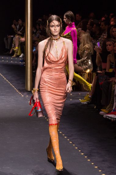 Versace è una delle Maison che hanno presentato la collezione Autunno/Inverno 2019-20 durante la Milano Fashion Week, mandando in passerella una donna forte, libera e aggressiva. Tra pellicce ecologiche, autoreggenti a vista, reggiseni portati sopra le maglie, Donatella Versace ha voluto fare molti riferimenti all'universo bondage, anche se il suo obiettivo principale è stato rivisitare il mondo grunge in chiave glamour.