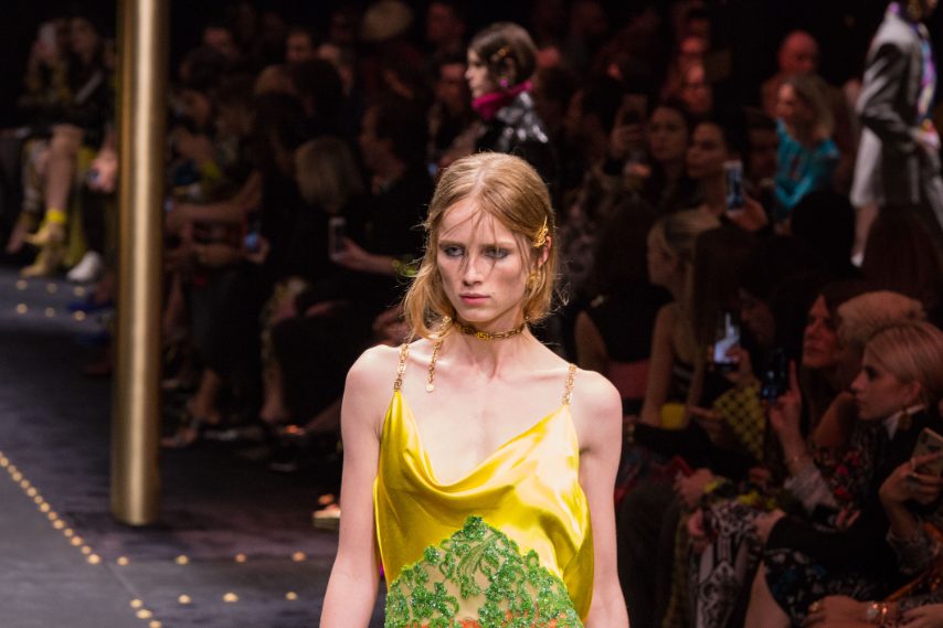 Versace è una delle Maison che hanno presentato la collezione Autunno/Inverno 2019-20 durante la Milano Fashion Week, mandando in passerella una donna forte, libera e aggressiva. Tra pellicce ecologiche, autoreggenti a vista, reggiseni portati sopra le maglie, Donatella Versace ha voluto fare molti riferimenti all'universo bondage, anche se il suo obiettivo principale è stato rivisitare il mondo grunge in chiave glamour.