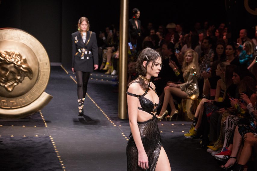 Versace è una delle Maison che hanno presentato la collezione Autunno/Inverno 2019-20 durante la Milano Fashion Week, mandando in passerella una donna forte, libera e aggressiva. Tra pellicce ecologiche, autoreggenti a vista, reggiseni portati sopra le maglie, Donatella Versace ha voluto fare molti riferimenti all'universo bondage, anche se il suo obiettivo principale è stato rivisitare il mondo grunge in chiave glamour.