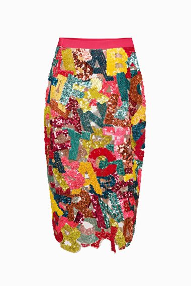 La gonna con le lettere di paillettes di Elisabetta Franchi